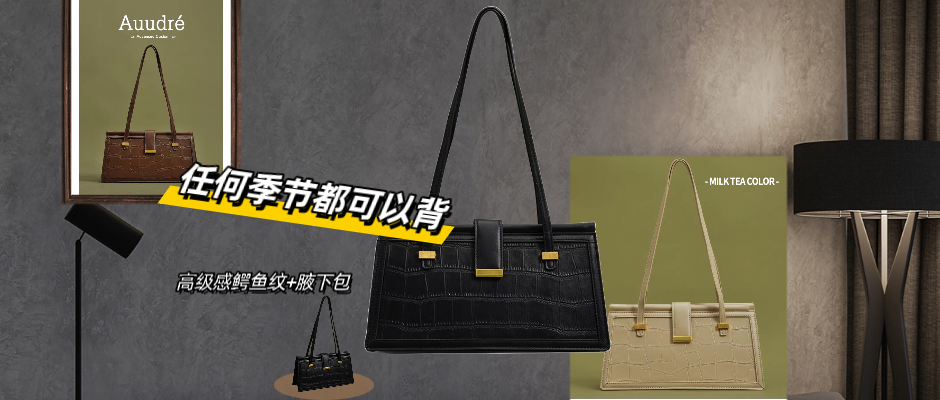 Auudre轻奢高级感鳄鱼纹腋下包包女2023新款小众大容量通勤单肩包,容量大,肩带也长,闭眼入系列!