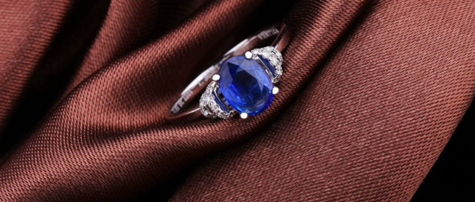 VENTIGA天然18k白金心形蓝宝石戒指 豪华群镶钻石彩色宝石