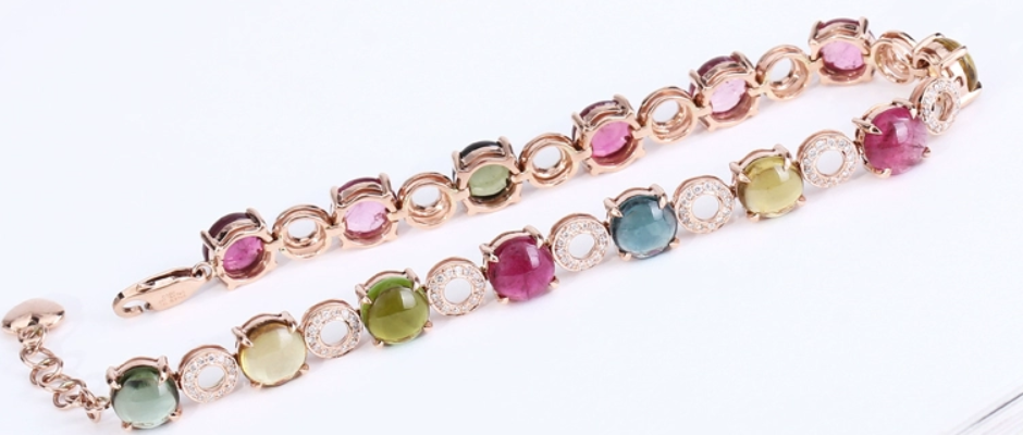 VENTIGA/梵蒂加18k玫瑰金彩色碧玺手链 巴西宝石镶嵌女款定制