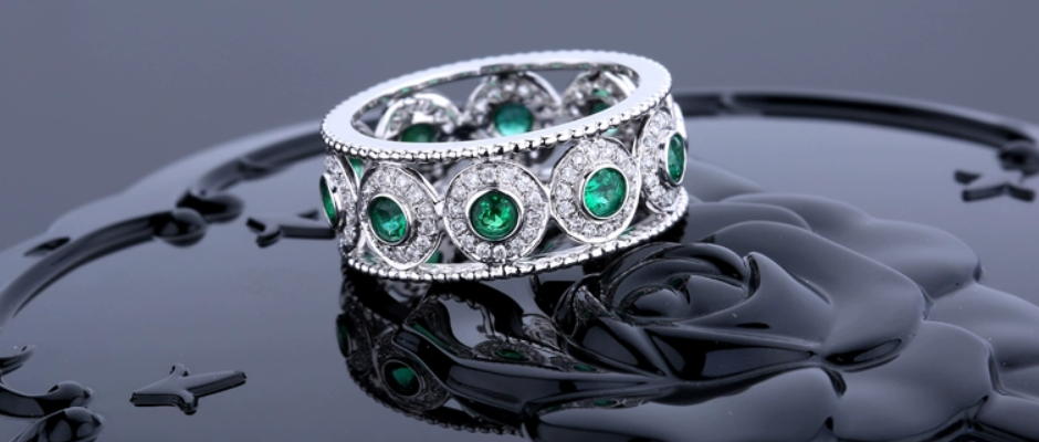 Ventiga梵蒂加 18K白金天然圆形祖母绿戒指 彩色宝石围钻戒指女