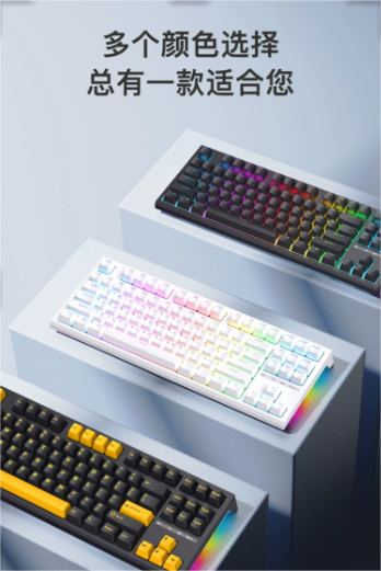 RK R87有着类肤触感的外壳,全新的87模具,顶级的卫星轴,侧翼双RGB灯带,优秀的自主客制化K黄、白、银轴,配合自主K轴119元的起售价格,真正做出了好用的入门机械键盘,RK R87现世即王炸。