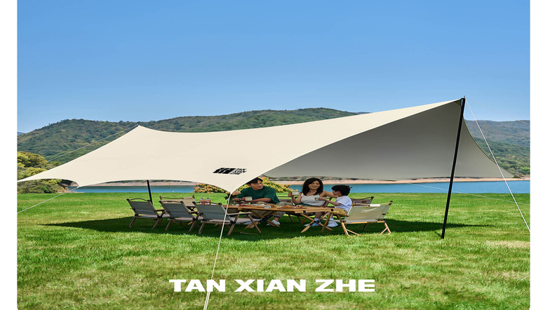 原始人天幕帐篷户外专业防晒黑胶涂层沙滩遮阳棚桌椅露营装备全套