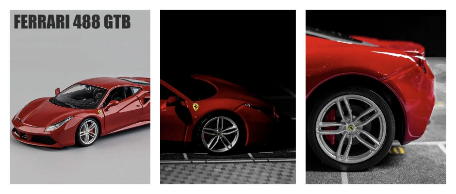 正版珍藏法拉利-488-GTB124比美高收藏级汽车超跑汽车红色闪电手办模型