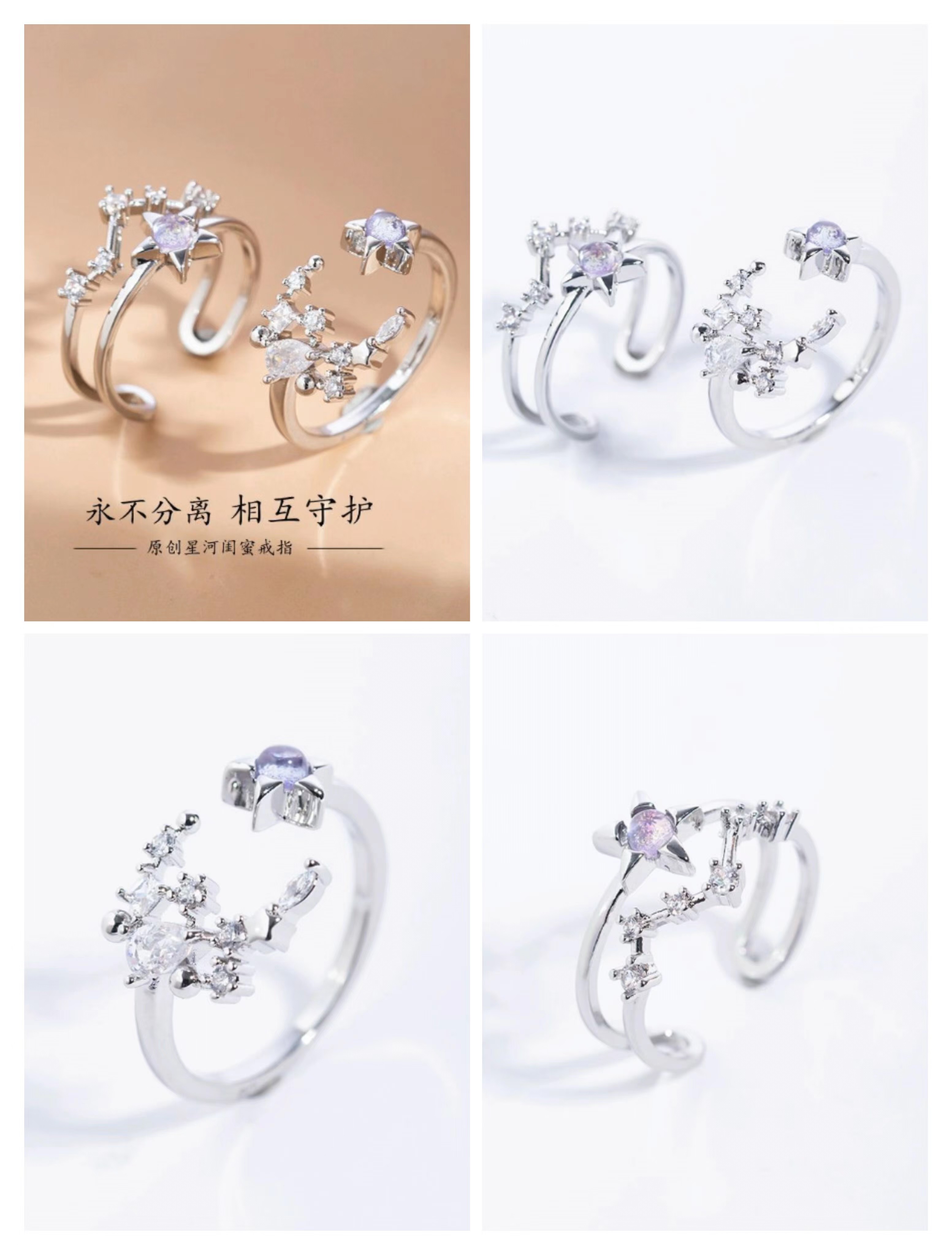 戒指,是爱的象征。这枚戒指含有很深的寓意,就是永不分离,相互守护。 这款戒指设计独特,优选进口稀有紫色玻璃石,采用了银色材质,呈现出流畅而时尚的外观。