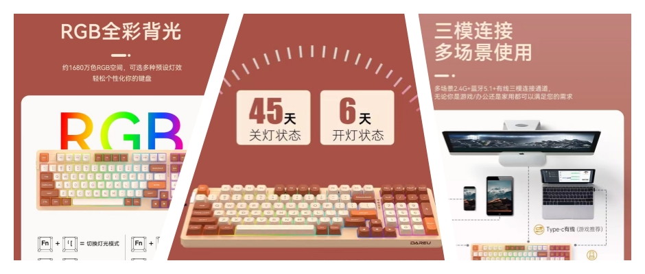 三模连接,内置锂电,热轴插拔,RGB灯光