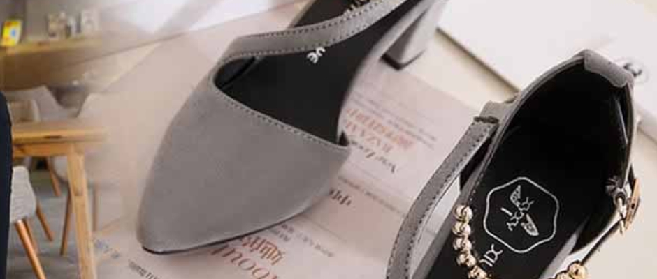 尖头粗跟高跟鞋一字扣单鞋 性感窜珠脚链高跟浅口凉鞋女鞋