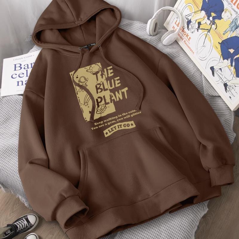 新款立体压胶秋冬加绒加厚连帽卫衣男女潮牌宽松上衣学生简约情侣