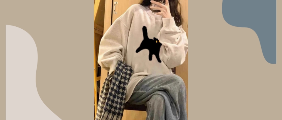 连帽美式宽松卫衣女卡通圆领加绒加厚重磅长袖慵懒风学生上衣外套