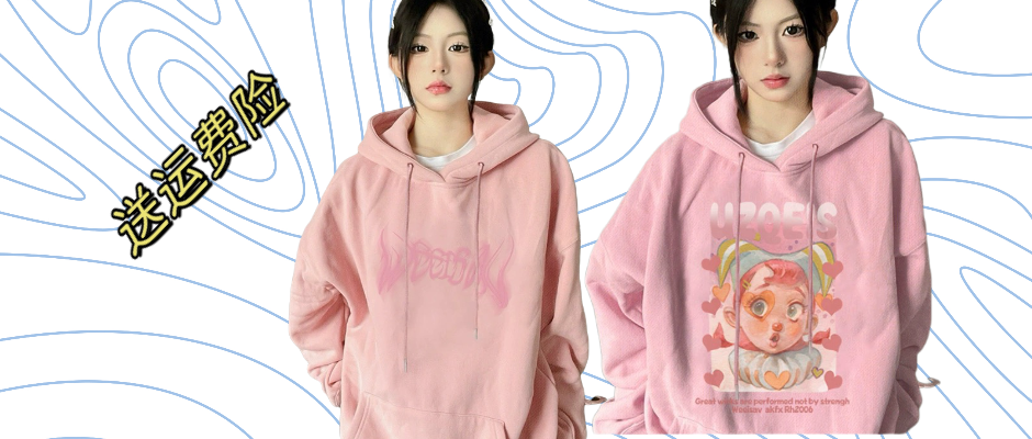 美式卫衣oversize高街外套女秋冬重磅帽衫情侣连帽宽松套头上衣潮 宽松 粉色 S