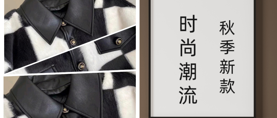 韩版棋盘格皮衣-设计感复古黑白棋盘格皮衣外套