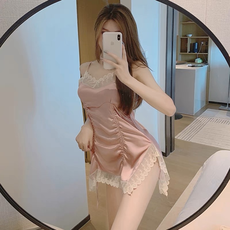 性感睡衣女夏季冰丝薄款火辣小胸高级感蕾丝吊带睡裙女2023年新款