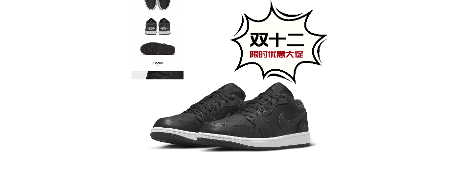 耐克男鞋Air Jordan 1 Low AJ1黑灰色爆裂纹低帮篮球鞋FB9907-001