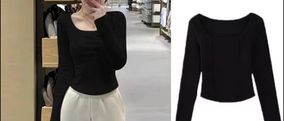 纯欲风正肩方领鱼骨德绒打底衫外穿长袖t恤女秋冬季内搭保暖上衣