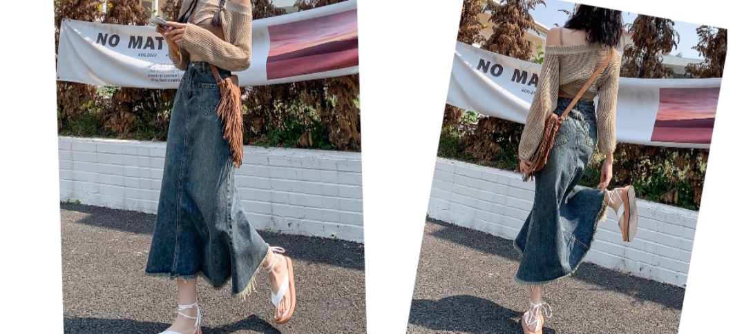 复古牛仔半身裙女秋冬季2023新款高腰显瘦小个子a字鱼尾中长裙子