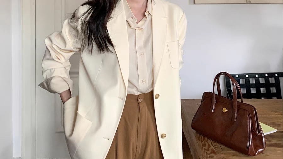 廓形感休闲风西装外套女秋新款简约宽松西服上衣