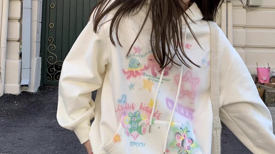 荧光涂鸦印花连帽卫衣女2023秋冬新款宽松显瘦休闲上衣