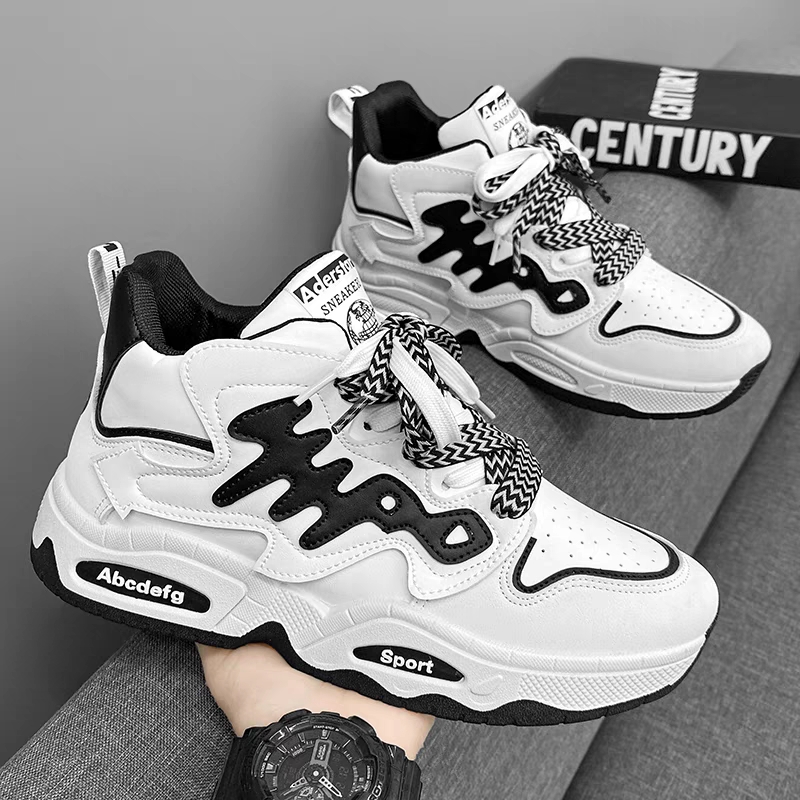 安錔男鞋秋季2023年新款透气网面运动休闲百搭小白板鞋厚底老爹鞋