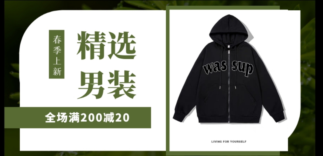 WASSUP拉链外套开衫字母印花潮牌秋冬加绒情侣运动休闲连帽卫衣男