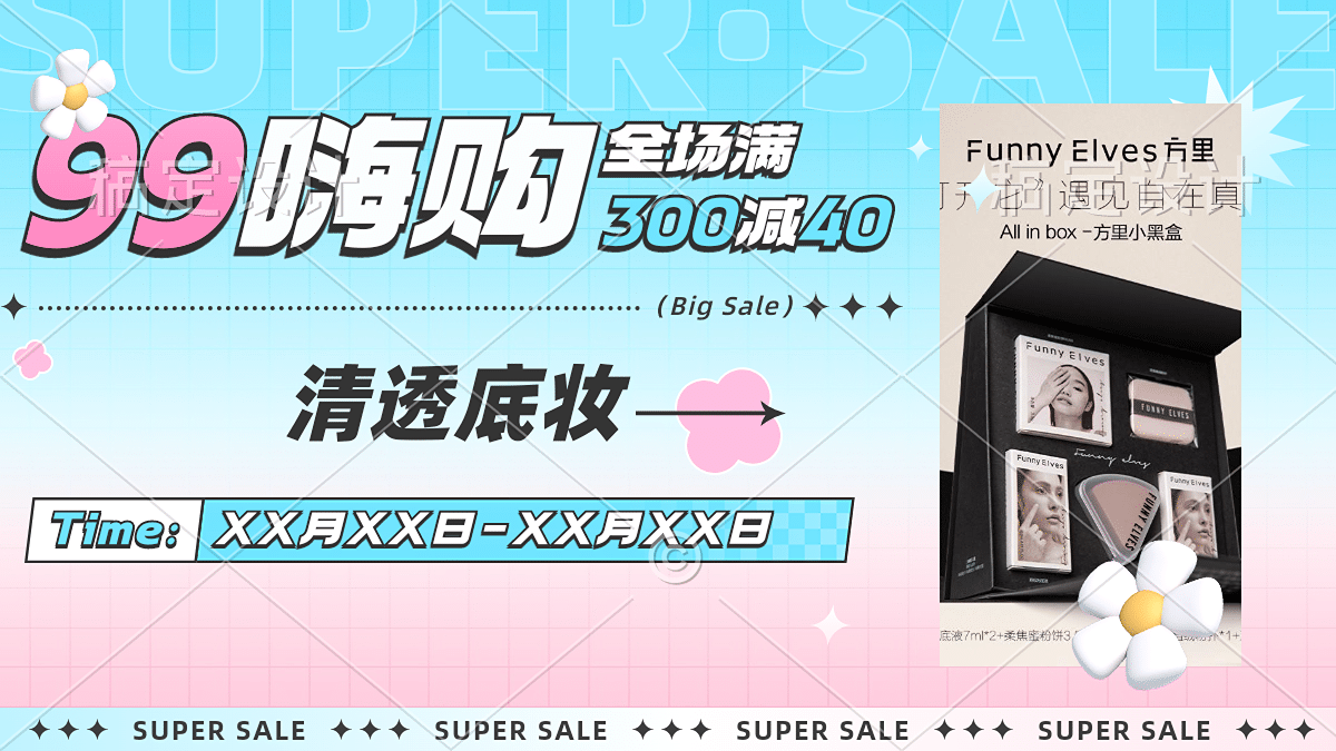 FunnyElves粉饼3.5g粉底液7ml套装方里月抛小黑盒底妆礼盒正品