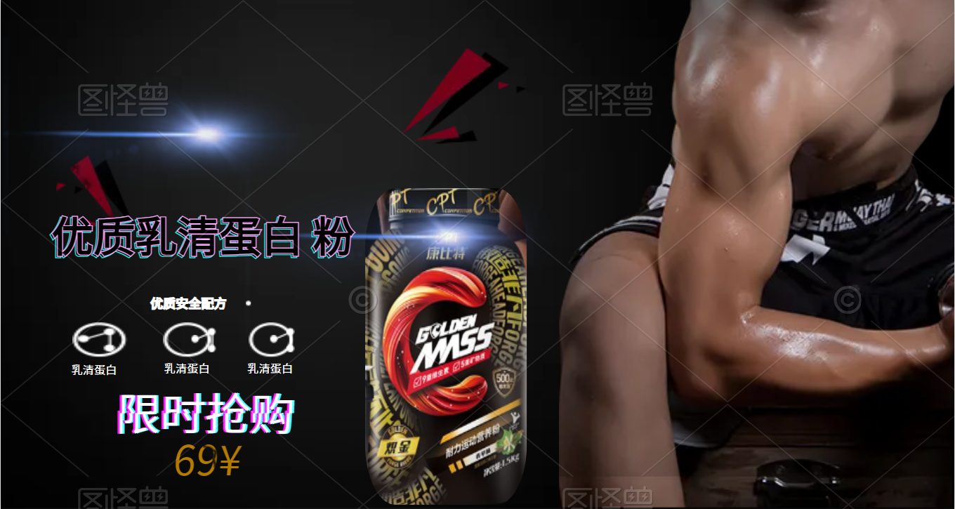 康比特炽金乳清蛋白质增肌粉450g瘦子增重增肌粉健身运动多营养长肥胖益生菌