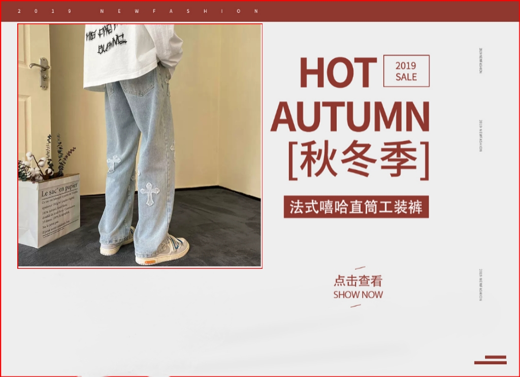 十字架牛仔裤男春秋季2023新款美式高街潮牌宽松大码阔腿直筒裤子 月销 300+