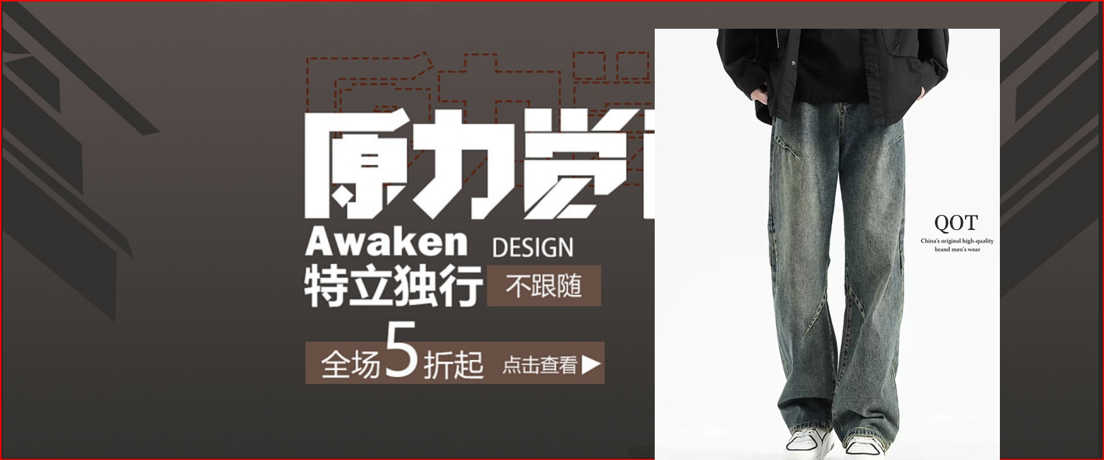 QOTRIOCK美式高街解构牛仔裤男秋季潮牌设计感宽松直筒裤休闲长裤
