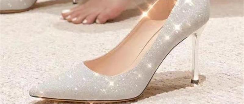 银色高跟鞋女细跟尖头2023新款水晶婚鞋新娘鞋结婚婚纱婚礼订婚鞋