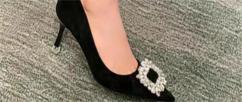法式尖头水钻高跟鞋女秋季2023年新款细跟大码小码黑色职业单鞋女