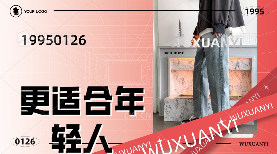 Ceecuz水洗做旧直筒牛仔裤男款宽松直筒阔腿裤美式复古休闲长裤子