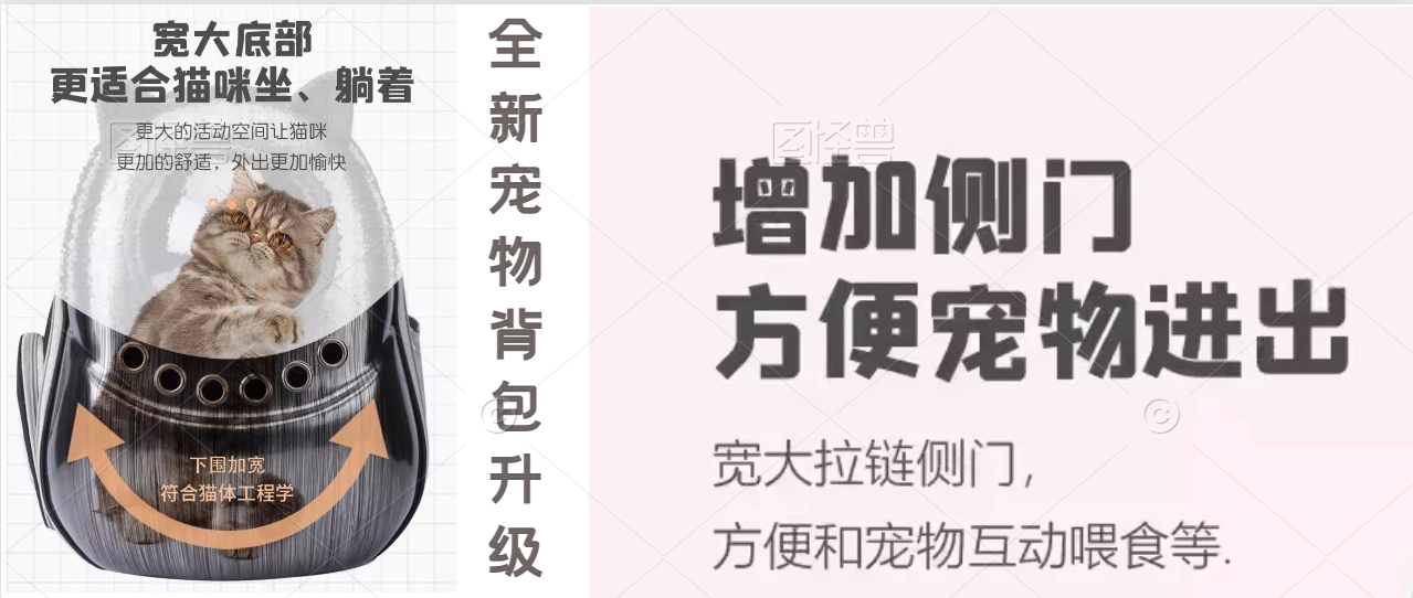 猫包外出便携太空舱大容量宠物双肩背包猫笼猫书包袋狗箱猫咪用品 山水黑15孔【双层加厚 有侧兜】