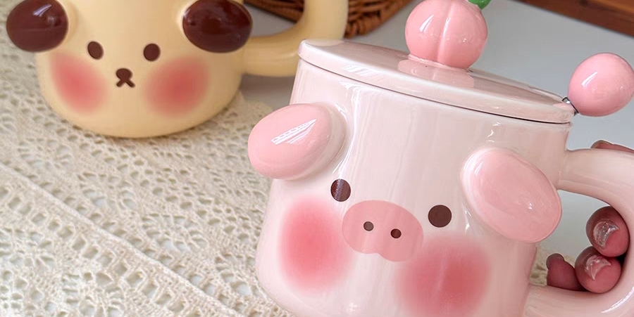 奶fufu陶瓷水杯带盖勺可爱猪猪送闺蜜女友生日礼物马克杯咖啡杯