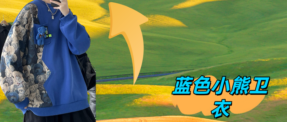 克莱因蓝小熊卫衣男春秋款2023新款圆领上衣服潮牌情侣装撞色外套 黑色 XL