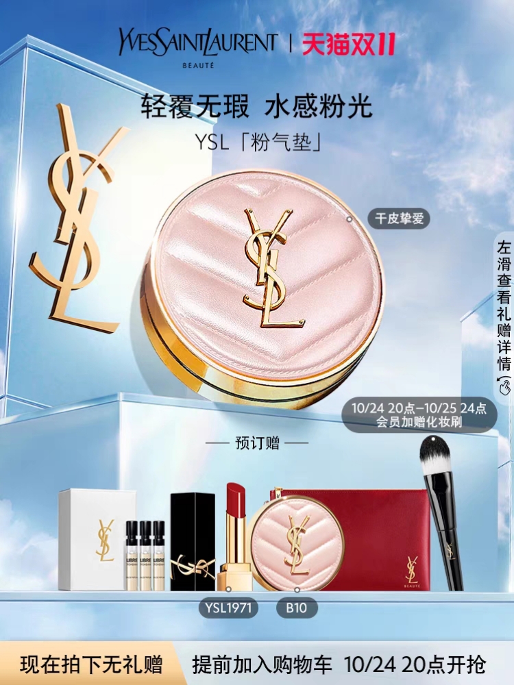 正品 YSL圣罗兰粉气垫 持久轻薄细腻干皮挚爱