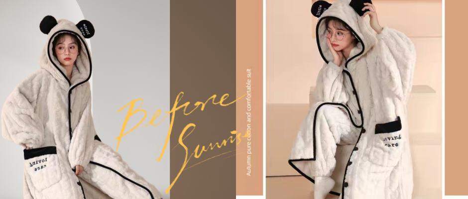 睡衣选用保暖、透气、舒适的面料,3D提花绒面料在穿着舒舒适、柔软、亲肤同时还能够为您添置一份舒适感。