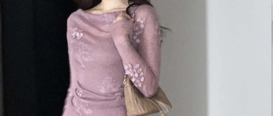 TYANG贰羊设计 菩提荡领法式复古气质羊毛两件套打底刺绣连衣裙女