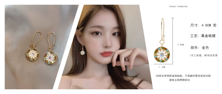 复古巴洛克彩色圆耳坠女耳扣防掉设计师小众耳环个性气质耳饰配饰