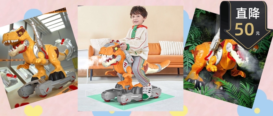 恐龙滑滑车,锻炼宝宝平衡力。贴心设计每一个小细节,宝宝玩的开心妈妈更放心。恐龙雾化模块,只需在里面加入几滴水。推动喷雾推柄,从口中喷射出烟雾特效。