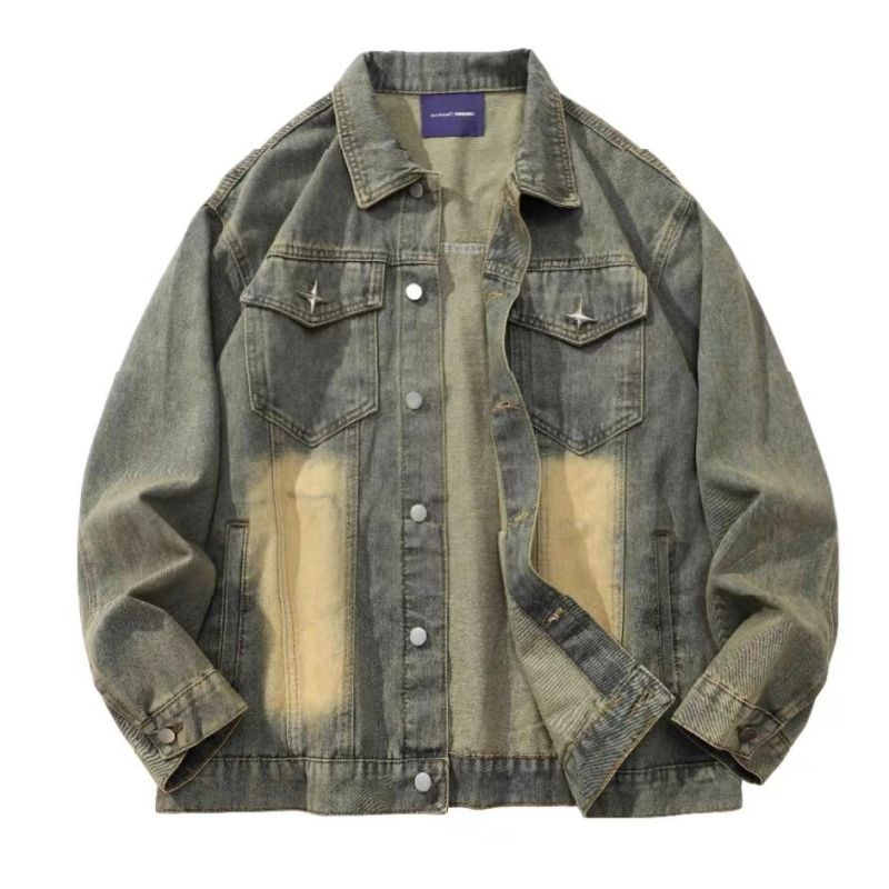 安紫黑色绿色卡其色外套oversize国潮痞帅刺绣设计感小众男装2023新款上衣