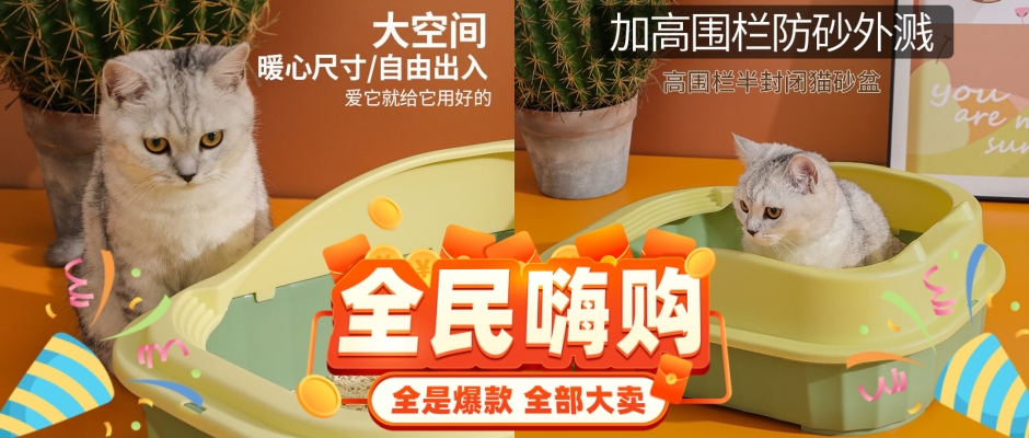 2023年新款猫砂盆半封闭开放式防溅猫屎盆大号猫厕所小号猫便盆围栏设计不惧溅砂半封闭结构通风不闷热分离式结构容易清洁方便拆卸猫耳朵设计两种大小随心选择加高加厚加大猫砂盆猫咪用品大全
