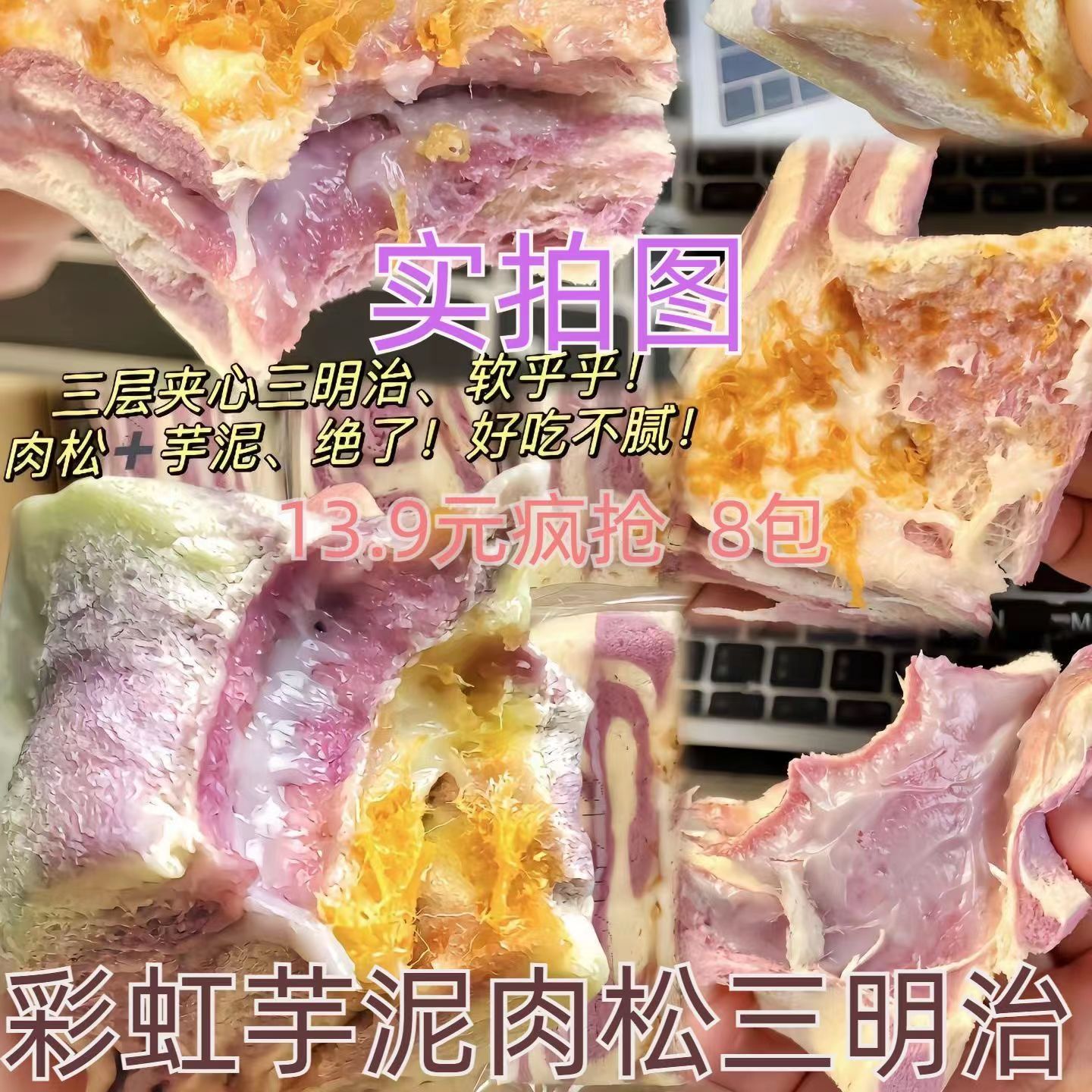 【便宜又好吃】新鲜香芋芋泥肉松三明治学生早餐代餐面包厂家直发