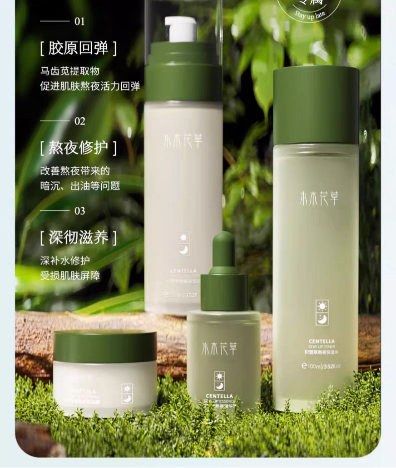 积雪草熬夜水乳四件套装补水保湿控油祛痘学生护肤官方旗舰店正品