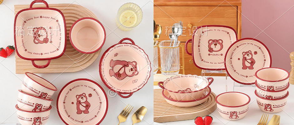 卡通陶瓷碗盘组合快乐熊系列餐具网红高颜值碗碟套装家用创意送礼
