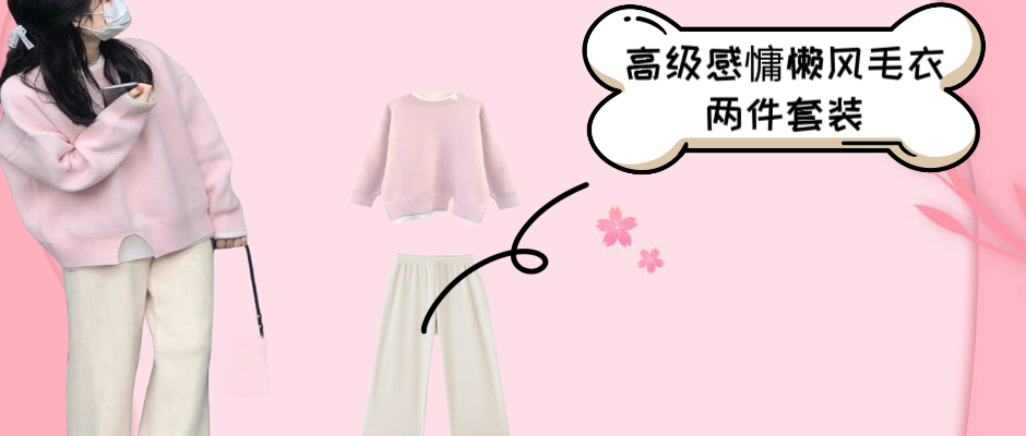 粉色毛衣两件套
