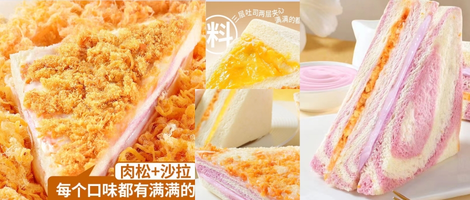 沙拉香芋黑麦肉松三明治面包夹心早餐营养代餐低脂点心下午茶零食