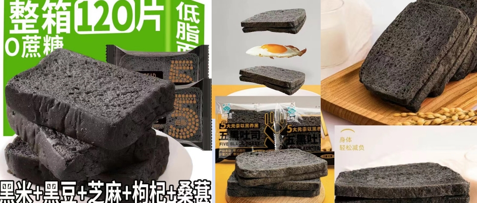 五黑全麦面包整箱吐司早餐代餐无蔗糖粗粮饱腹低脂热量食品包邮