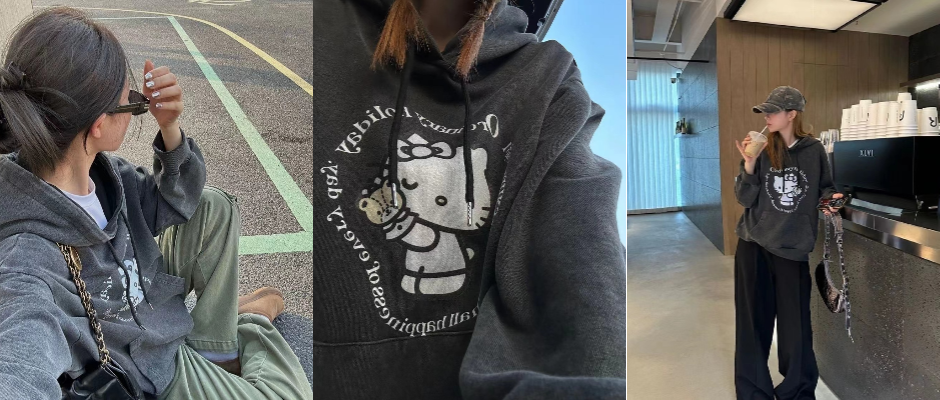 古着洗水kitty做旧卫衣外套女2023秋季新款韩版宽松上衣 常规款 深灰色 S