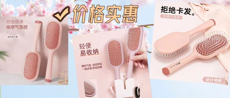 双层气垫梳双倍呵护;舒压解乏巨舒服;回形高弹气囊,一秒回弹,边梳发边按摩;伸展式大圆齿,入发开结不卡发,秒顺发;握感舒适,亲肤手柄,防滑省力。