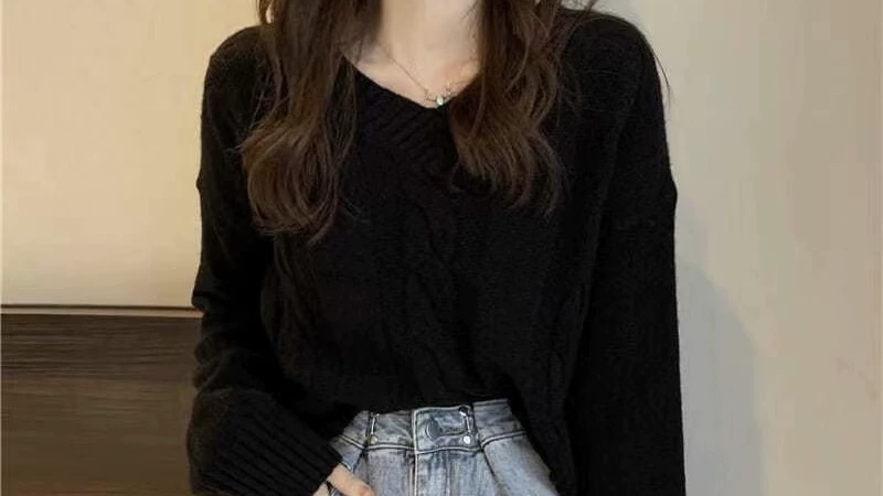 短款v领毛衣女2023秋冬新款内搭氛围感加厚慵懒风软糯打底针织衫