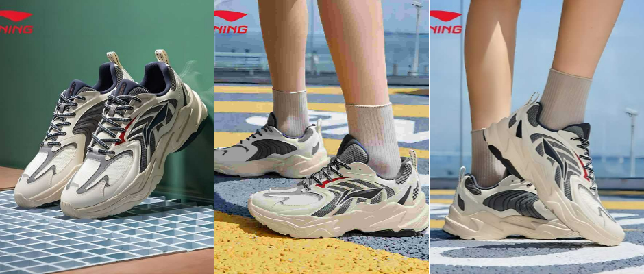 李宁男鞋启星休闲鞋春秋款时尚复古缓震老爹鞋透气耐磨跑步运动鞋 米白色 39