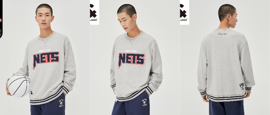 杰克琼斯春夏季NBA联名篮网队潮流时尚字母印花宽松长袖卫衣男装 s